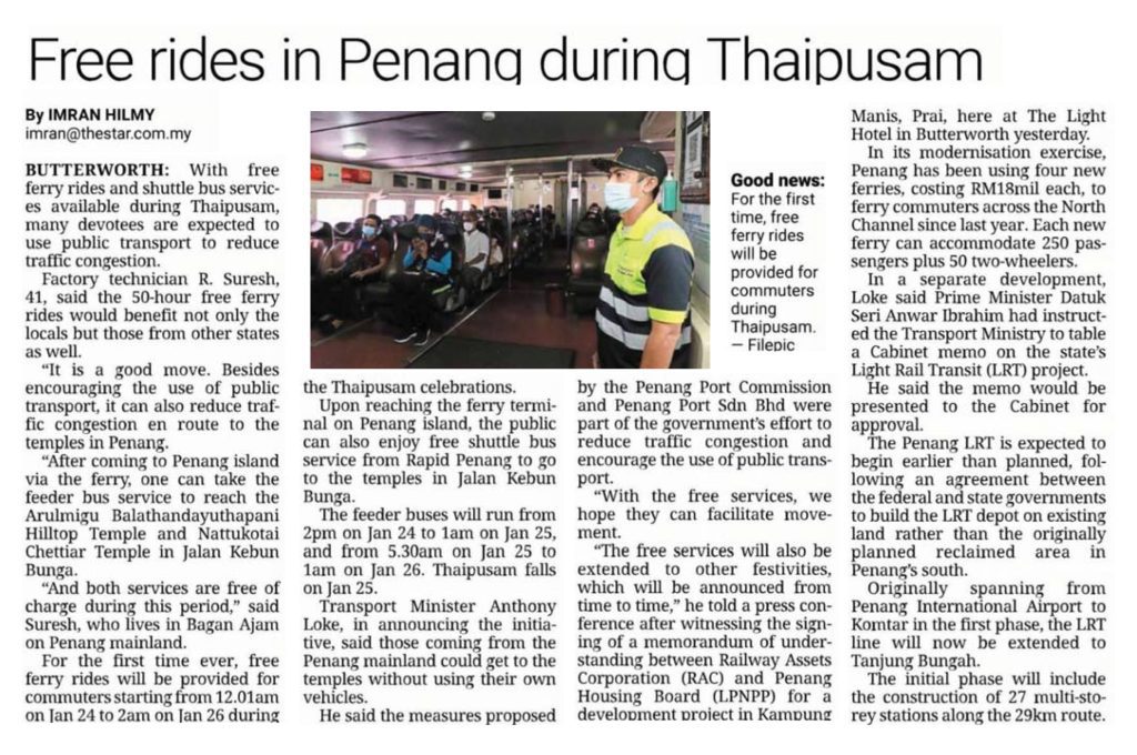Free Rides in Penang During Thaipusam