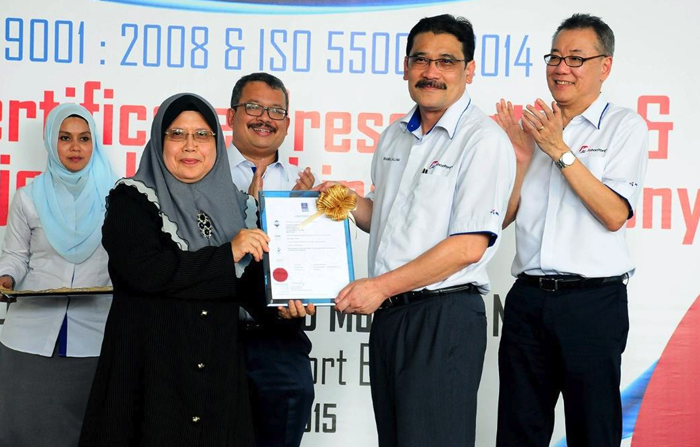 KUALA LUMPUR, 20 November 2015 – Johor Port Berhad, a wholly-owned subsidiary of MMC Corporation Berhad (MMC), has been awarded with an International Organisation Standardisation (ISO) certification for Quality Management System expansion of scope covering port operations by SIRIM.
